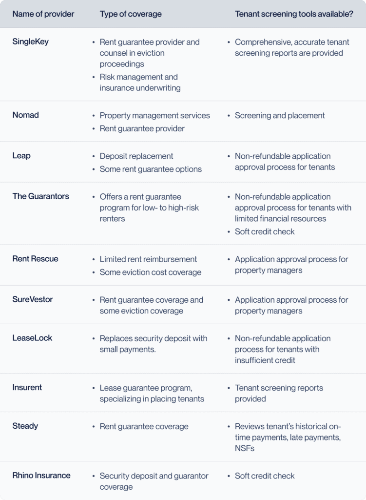 Here’s a closer look at what services some of the rent guarantee providers in the U.S. offer and what fees are associated with each company.